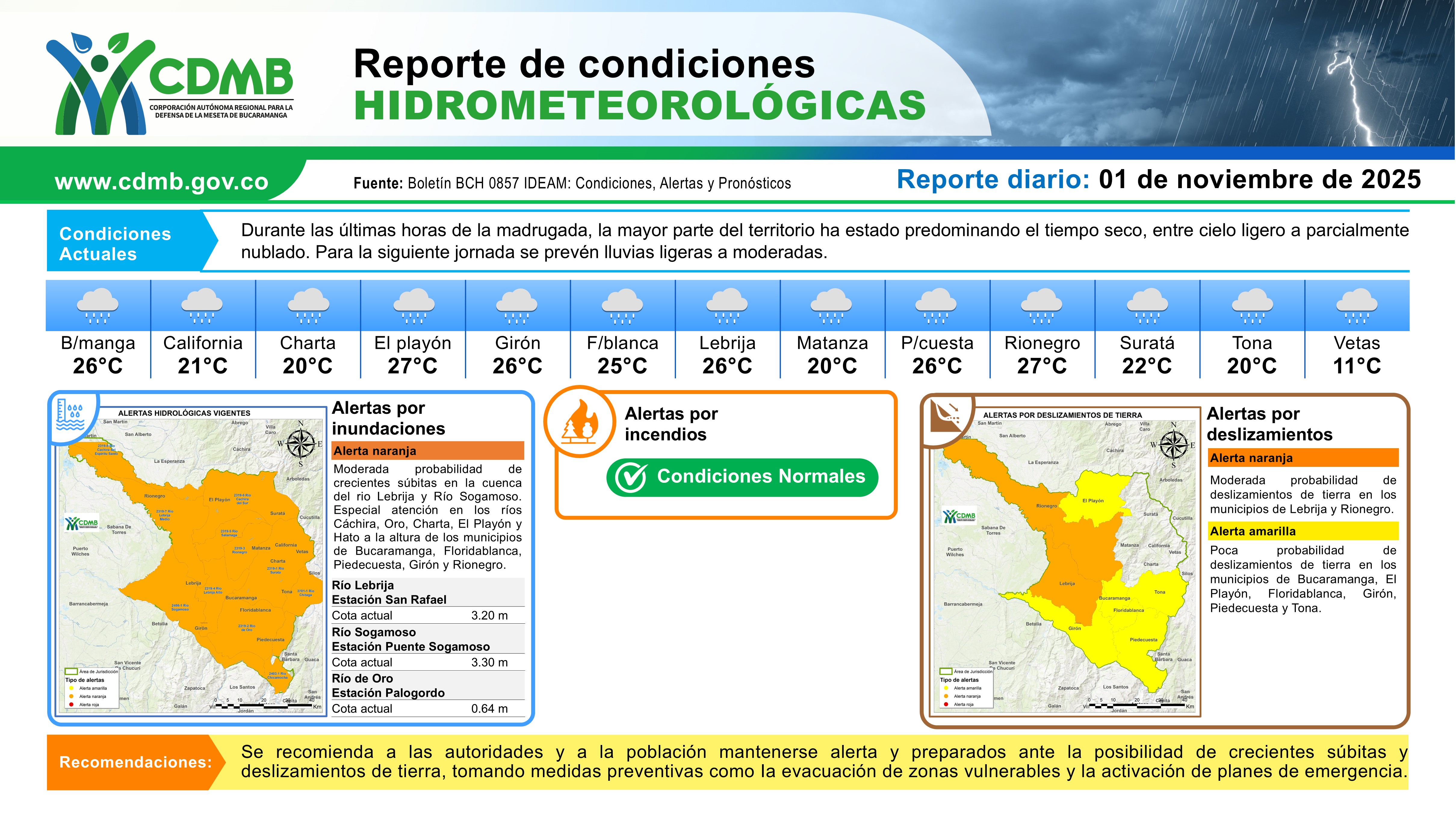 Reporte Alertas Hidrometeorológicas 01 de noviembre