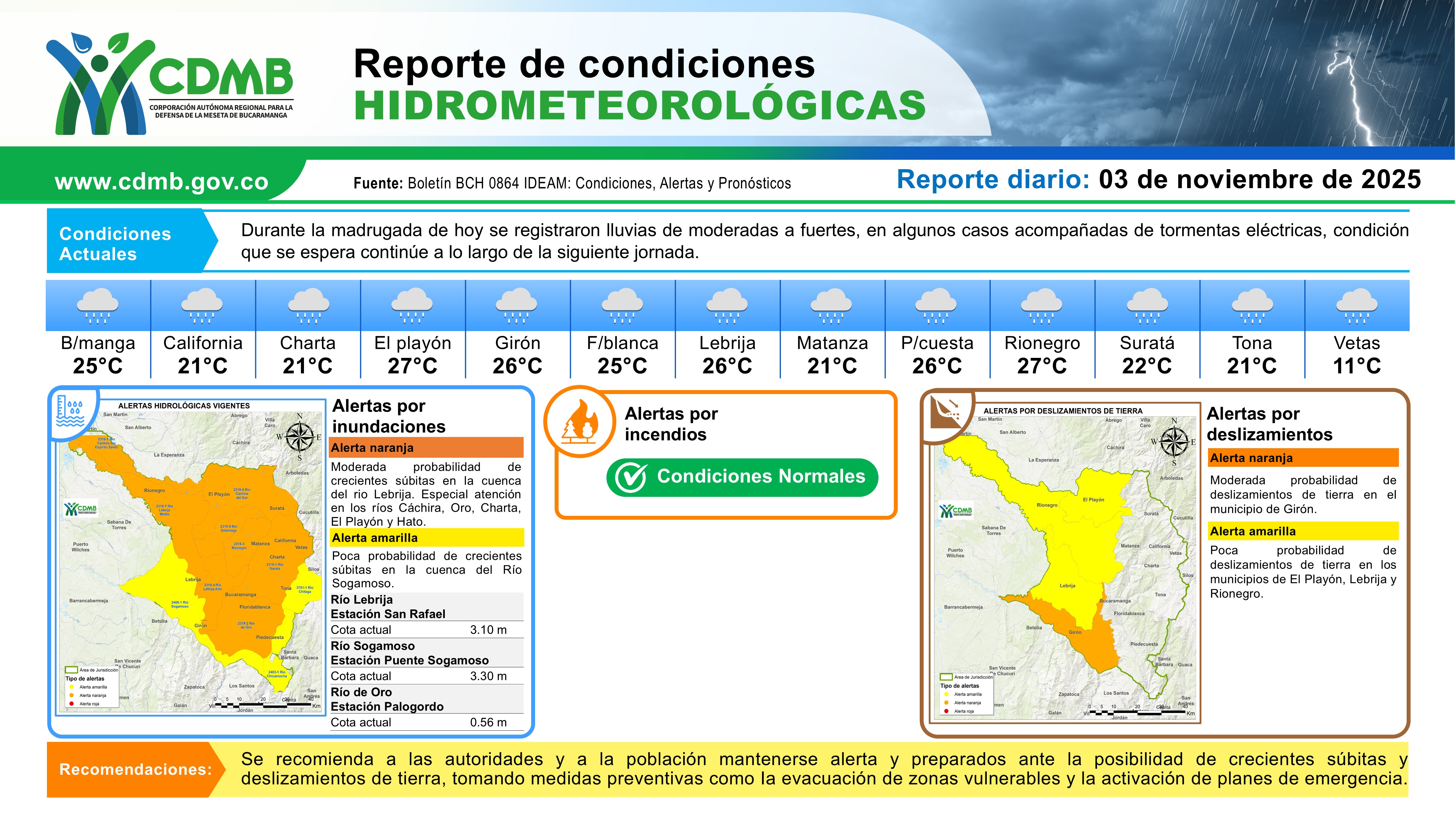 Reporte Alertas Hidrometeorológicas 03 de noviembre