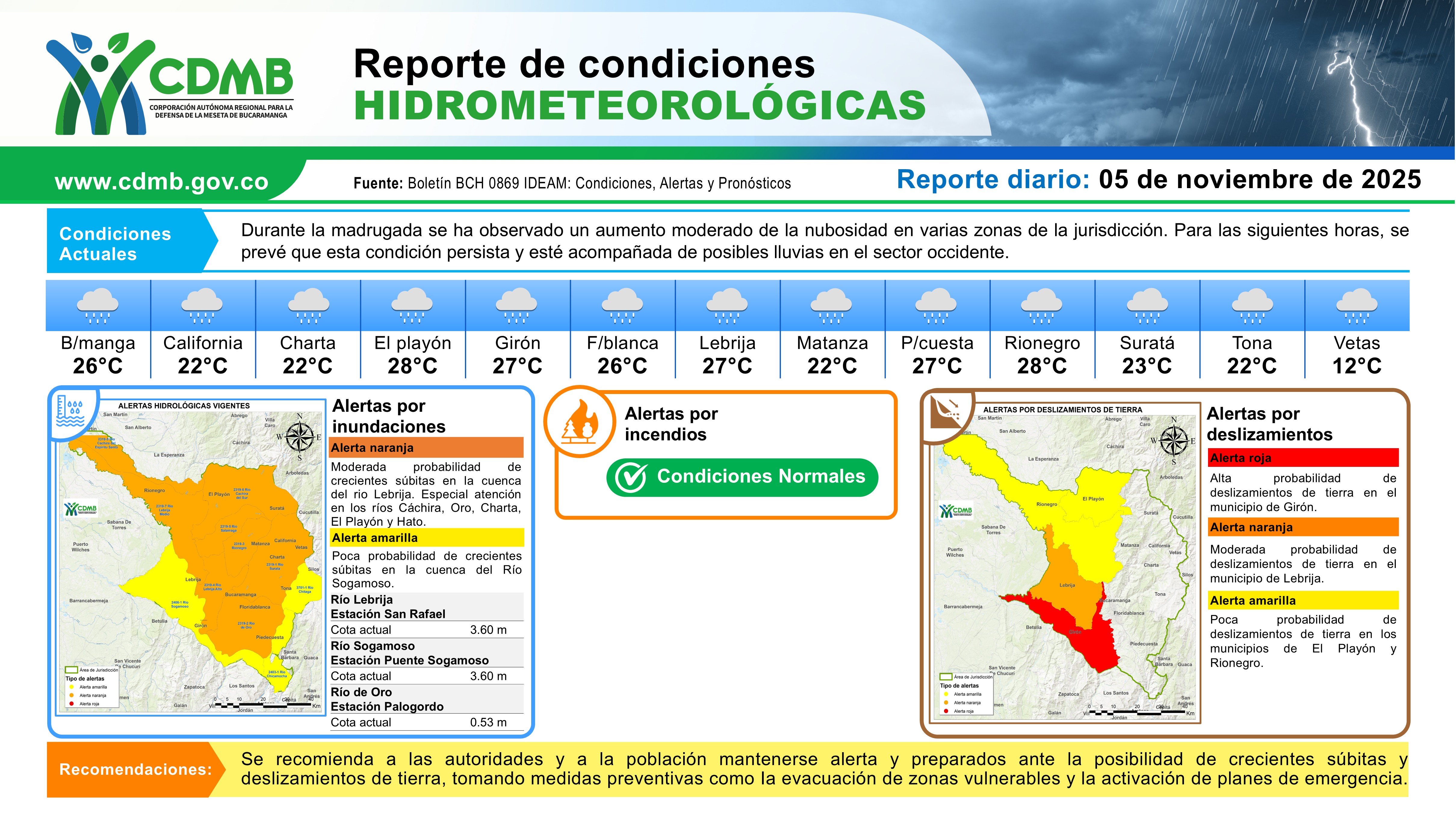 Reporte Alertas Hidrometeorológicas 05 de noviembre