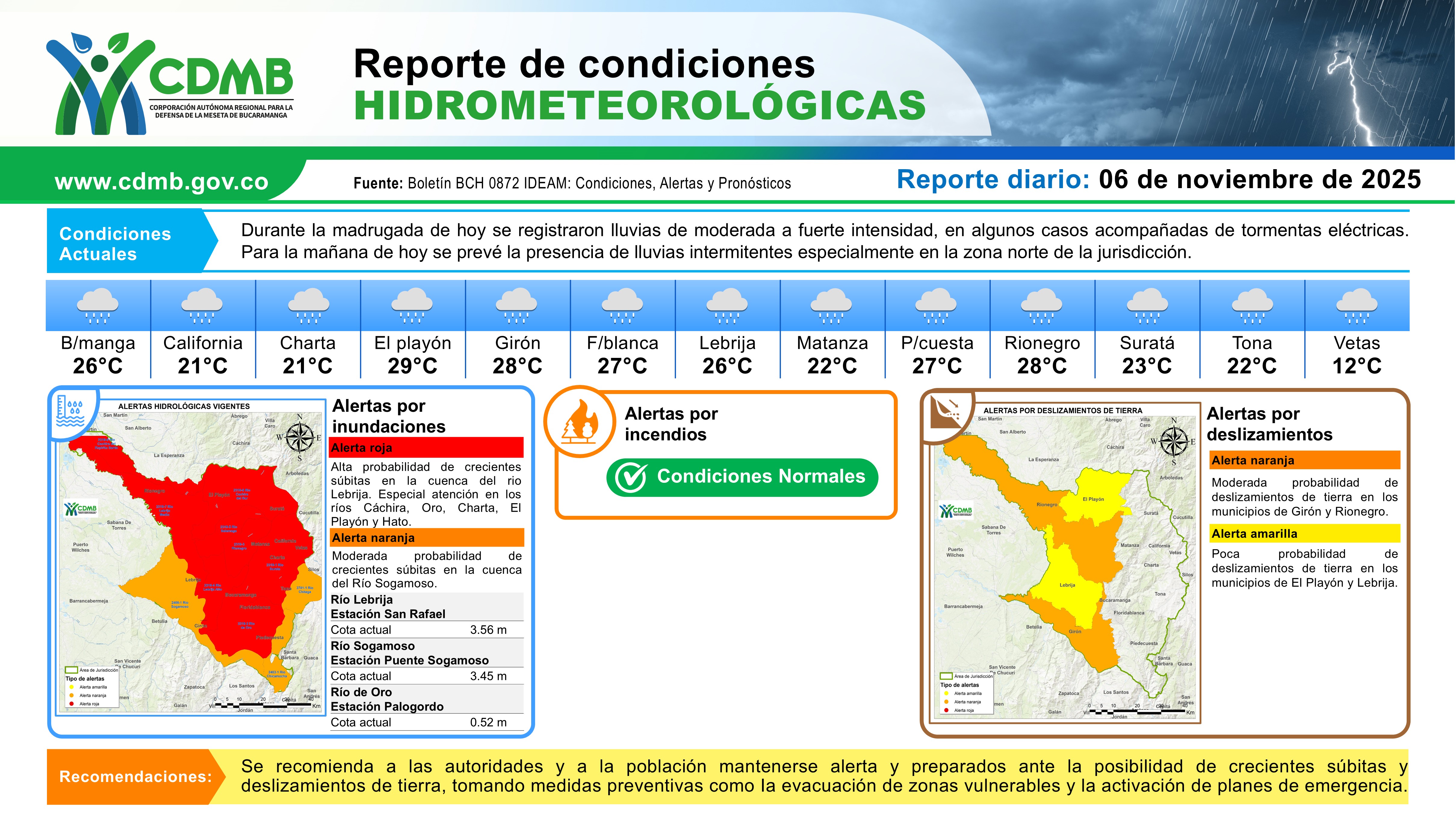 Reporte Alertas Hidrometeorológicas 06 de noviembre