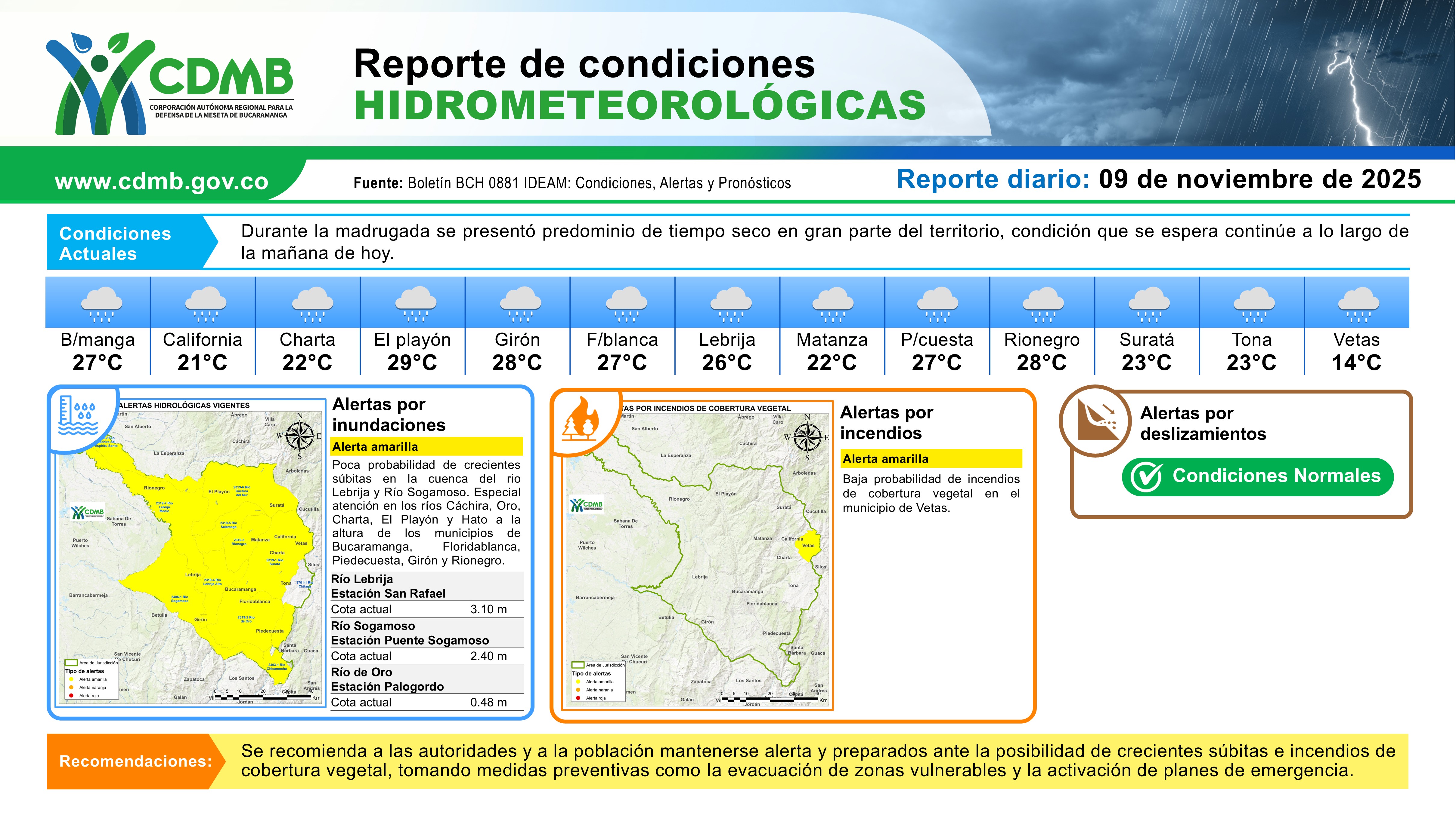 Reporte Alertas Hidrometeorológicas 09 de noviembre