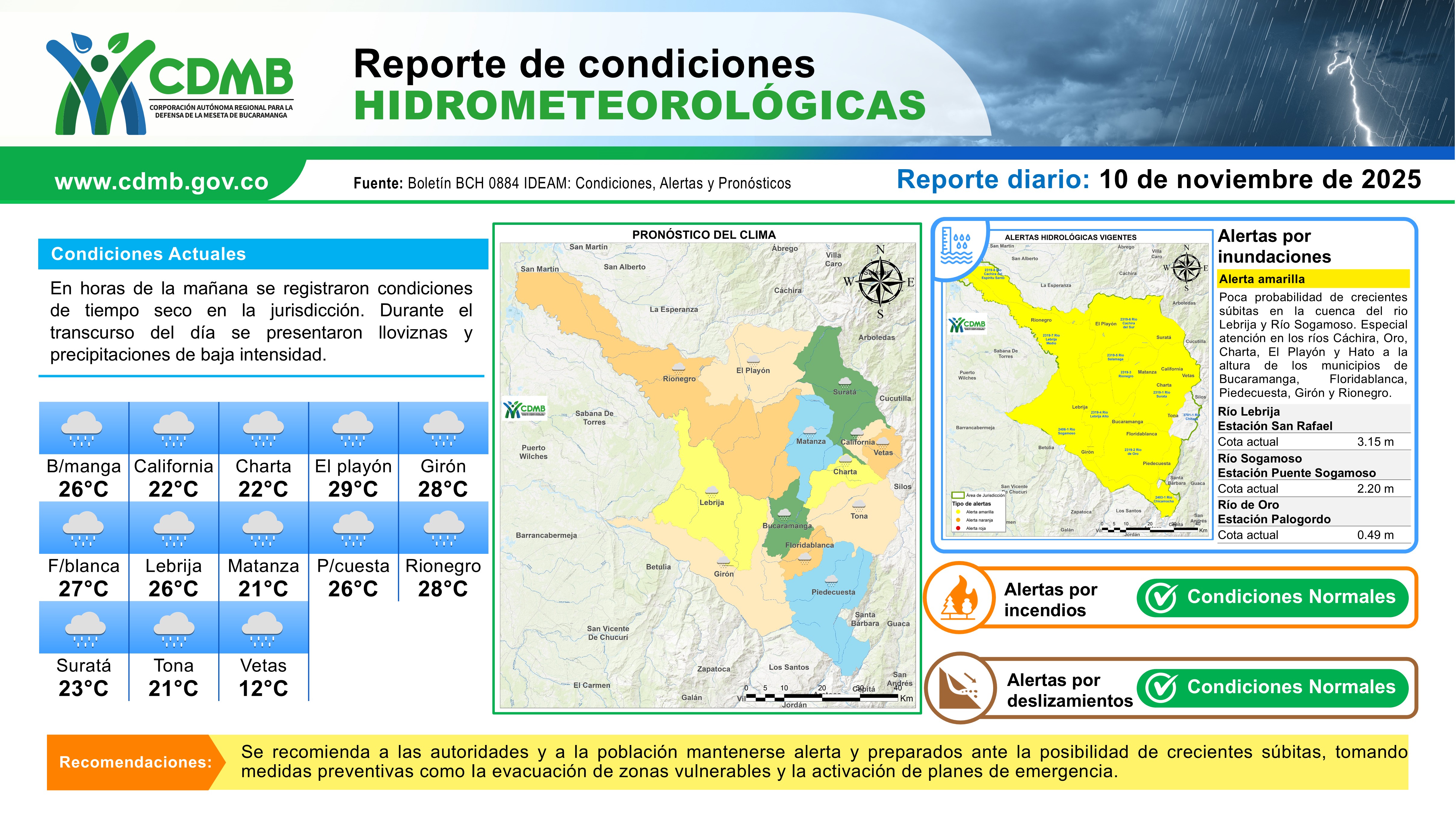 Reporte Alertas Hidrometeorológicas 10 de noviembre